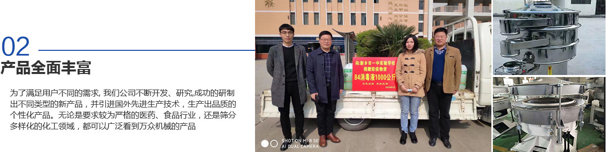 新鄉(xiāng)市萬眾機(jī)械設(shè)備有限公司是生產(chǎn)振動(dòng)機(jī)械、篩分設(shè)備和過濾設(shè)備的專業(yè)廠家之一,擁有生產(chǎn)設(shè)備、雄厚的技術(shù)力量、完善的檢測(cè)手段、嚴(yán)格的管理體系。是河南省的商標(biāo)之一,被河南省科學(xué)技術(shù)廳頒定為高新技術(shù)企業(yè),為新鄉(xiāng)市“守合同重信用企業(yè)“。質(zhì)量信得過產(chǎn)品、質(zhì)量服務(wù)消費(fèi)者滿意企業(yè)、合格產(chǎn)品等榮譽(yù)稱號(hào)。擁有自主進(jìn)出口經(jīng)營權(quán),產(chǎn)品遍布各地,并遠(yuǎn)銷北美、西歐及東南亞等地區(qū)。